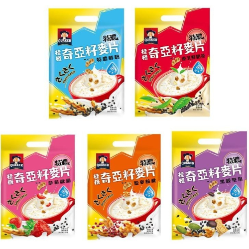 QUAKER 桂格 奇亞籽麥片黑穀堅果/藜麥核桃/草莓歐蕾/重乳鮮奶茶/特濃鮮奶 桂格