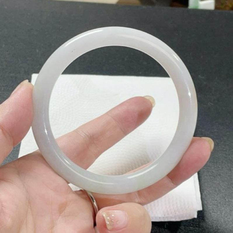 《Always9168輕奢珠寶》A45天然緬甸A貨翡翠手鐲冰粉膠小清新飄花冰潤圓條58.5圈口台證