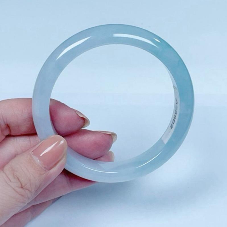 《Always9168輕奢珠寶》K72天然緬甸A貨翡翠手鐲冰川藍半山水平安鐲圈口58.3mm台證