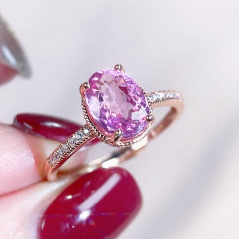 《Always9168輕奢珠寶》J45天然彩色寶石 巴西粉碧璽戒指 2克拉 四爪鑲嵌 S925銀全淨體