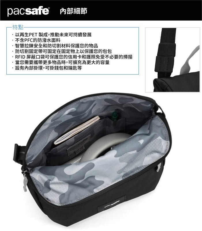 一款多功能、可擴展的斜背包,可在您需要時為您提供額外的容量。掀起磁性翻蓋即可發現隱藏式口袋,正面配有無障礙底座鎖,專為存放您的隨身必需品而設計。它重量輕,但配備了您在遠近冒險時保護您的貴重物品所需的所有防盜功能。該產品由消費後再生聚酯 (rPET) 製成,相當於 9 個再生塑膠瓶。