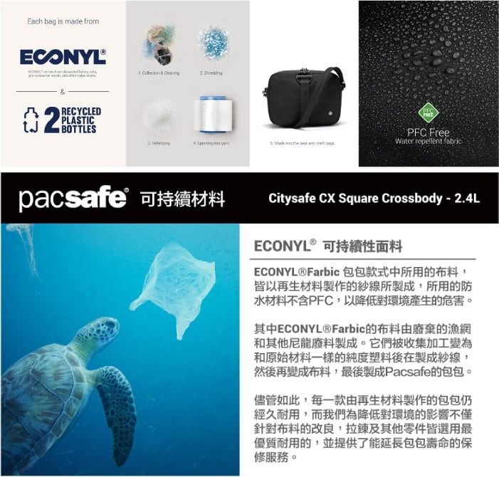 可持續材質:ECONYL®再生尼龍、再生聚酯纖維