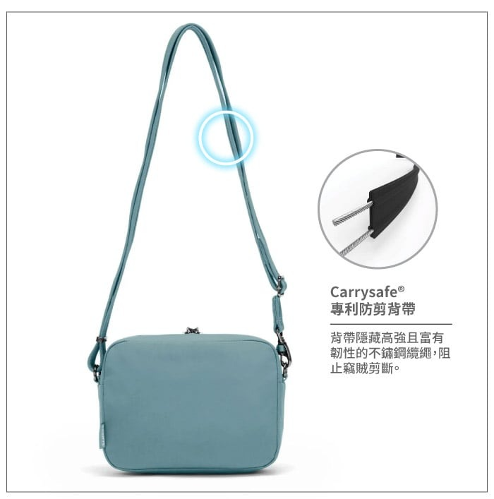 ◆Carrysafe專利防剪背帶,背帶隱藏強韌鋼繩
