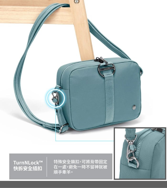 ◆TurnNLock專利快拆鎖扣,固定在椅子或欄杆上避免被順手牽羊