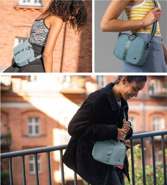 一款365全天候隨時可用的防盜斜背包,將時尚與功能融為一體,打造 24/7 生活。 它擁有專利防盜拉鍊鎖扣、RFID防射頻口袋和防剪鋼繩背帶,非常適合旅行或作為日常錢包。 幫助永續發展的布料以 ECONYL® 再生尼龍製成。