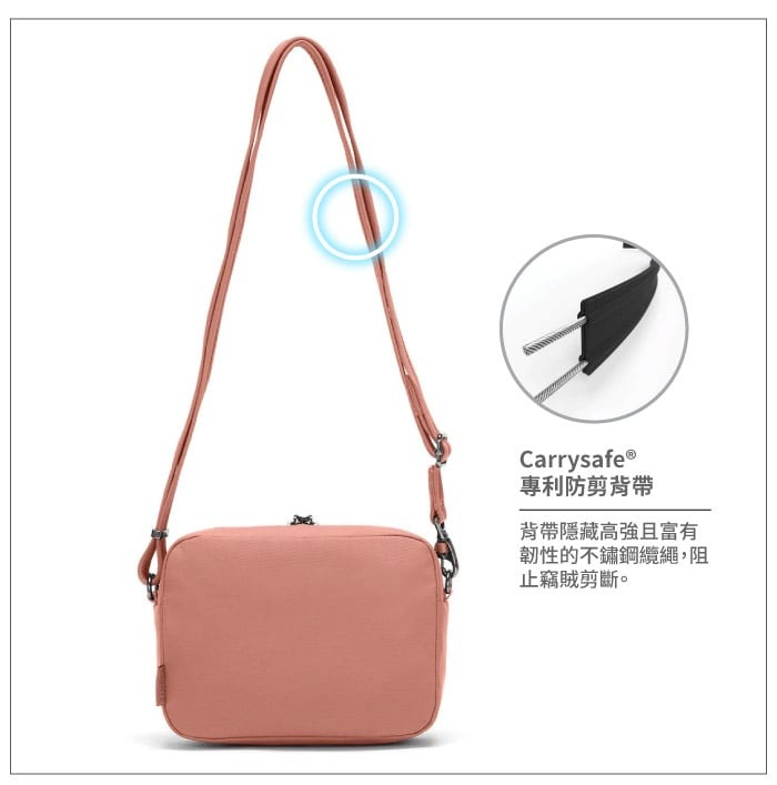 ◆Carrysafe專利防剪背帶,背帶隱藏強韌鋼繩