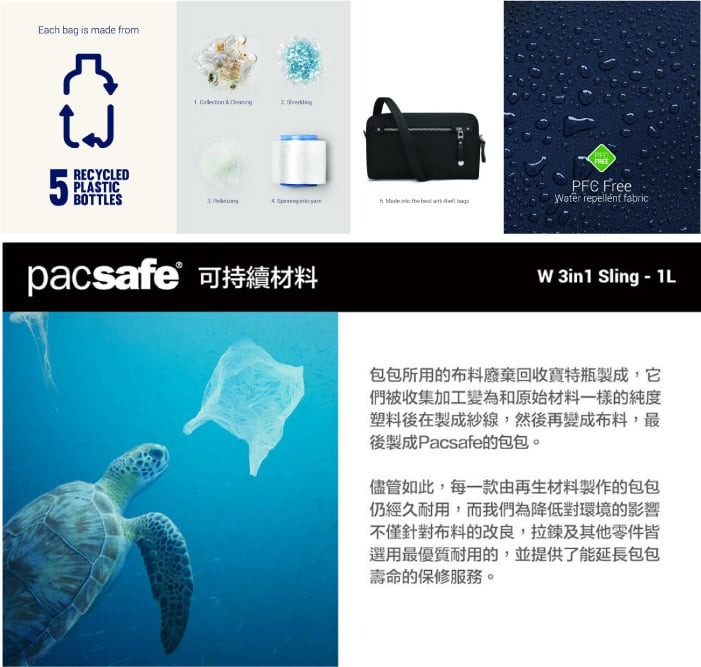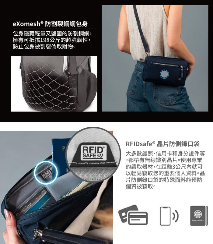 品名:W 3-In-1 Sling 三用防盜手拿側背包