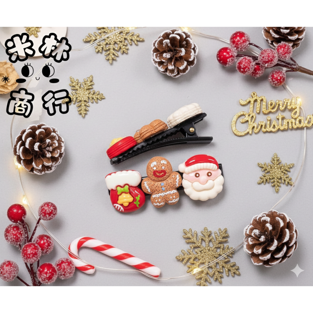 聖誕造型髮夾 兒童髮夾 頭飾 薑餅人 聖誕老人 一入 ♫米林商行♬