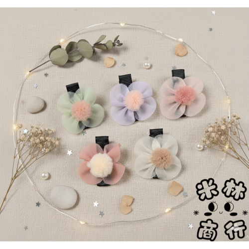 網紗花 毛球髮夾 汗毛夾 兒童 頭飾 ♫米林商行♬