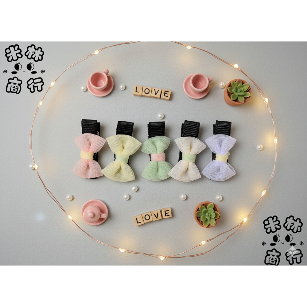 網紗跳色蝴蝶結 兒童髮夾 汗毛夾 頭飾 ♫米林商行♬