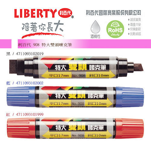 *利百代 908 特大雙頭嘜克筆雙向出擊,一邊是3~10mm的斜方尖頭,一邊是10~17mm的平方尖頭。