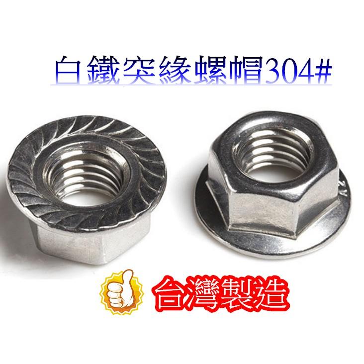 【商品名稱】:白鐵突緣螺帽 【商品產地】:台灣 【商品規格】:規格齊全.網頁上沒有的也可聊聊問我們喔. 量多歡迎議價喔!!! M6 $3 M8 $3 M10 $5 M12 $7 1/4 $2 5/16 $2 3/8 $3 1/2 $7 M5 $3