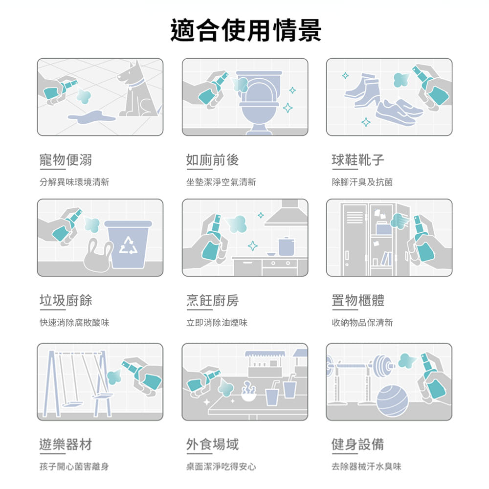 適用範圍:除臭、空氣淨化: 如廁前後、寵物窩、室內空間等有效去除異味,空氣瞬間"清新淡雅"。