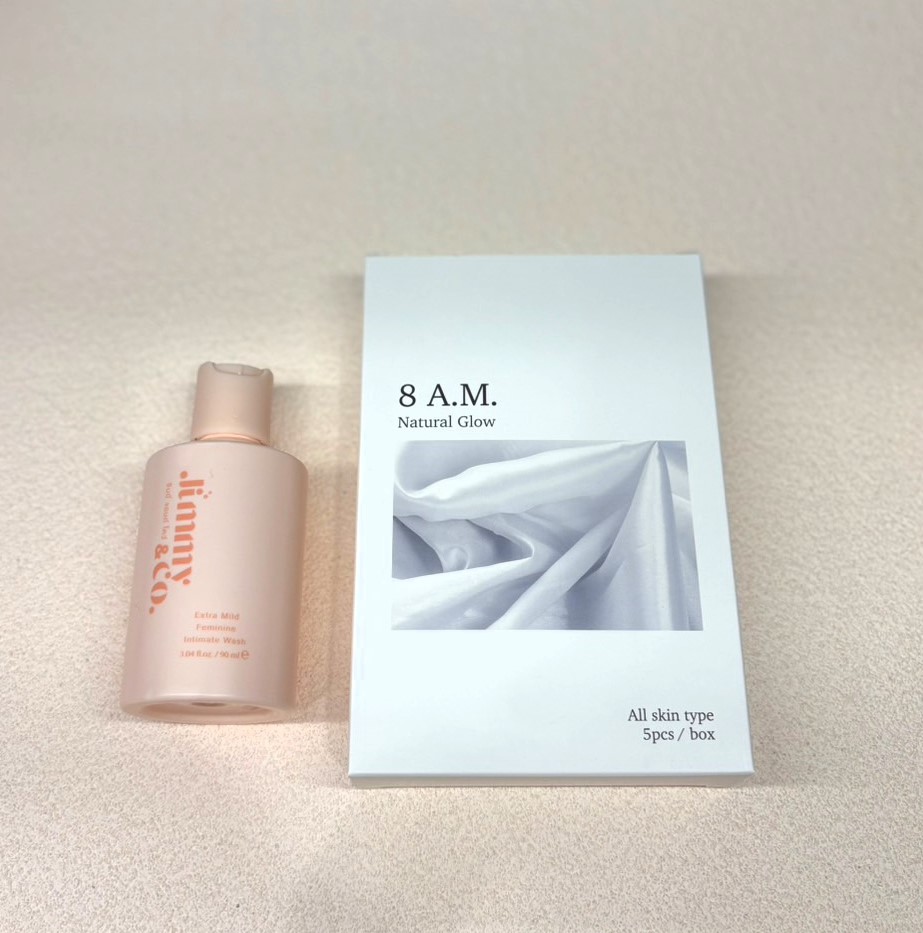 禮盒內容: 8 a.m.積雪草蝸牛修復保濕面膜5入+ Jimmy& Co 緁洣私密潔膚精萃 90ml