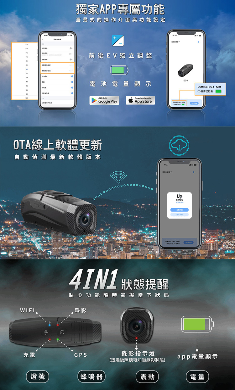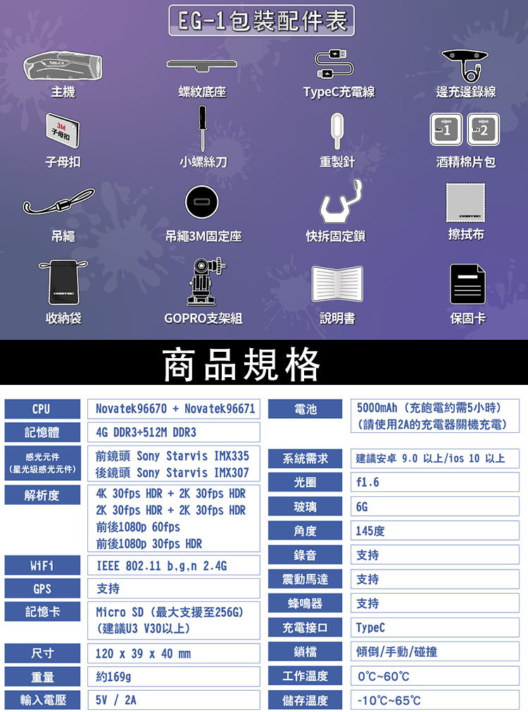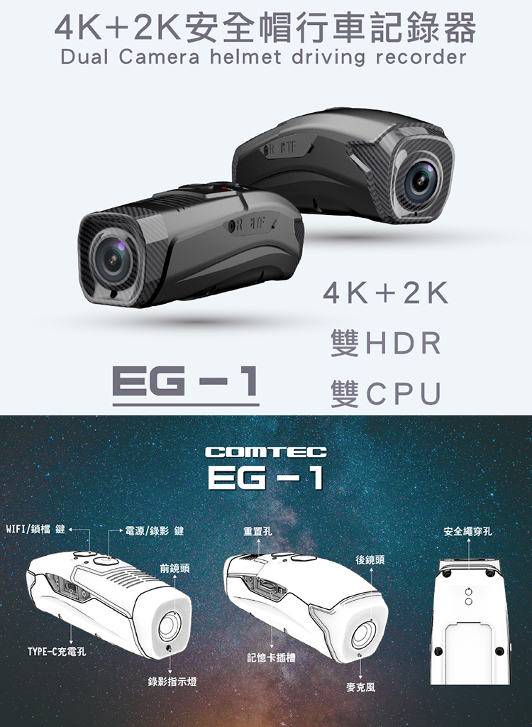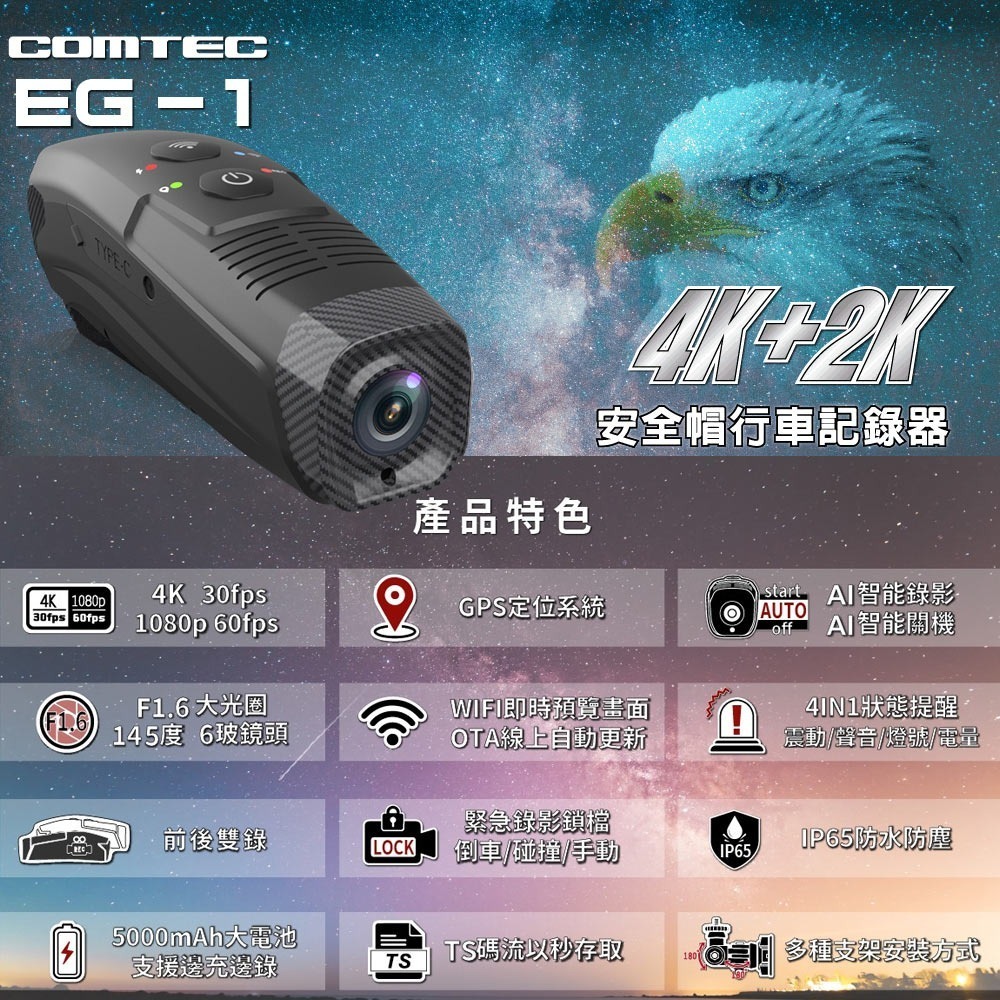 COMTEC 前後雙錄安全帽行車記錄器EG-1內附128GB記憶卡(贈收納硬殼包)