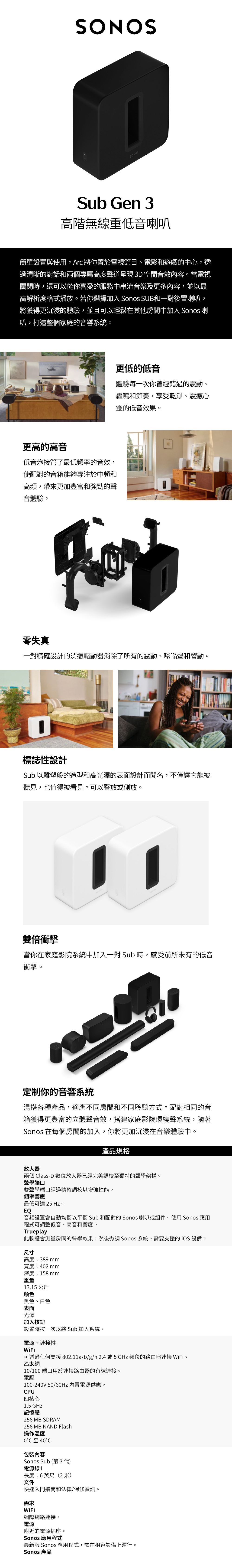 【SONOS】Sub Gen 3 高階無線重低音喇叭 白/黑 公司貨