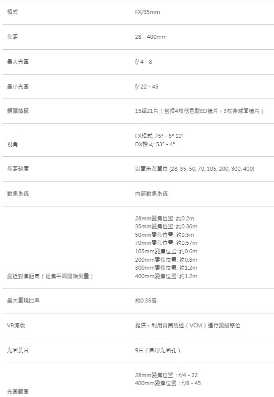 Nikon NIKKOR Z 28-400mm f/4-8 VR 公司貨