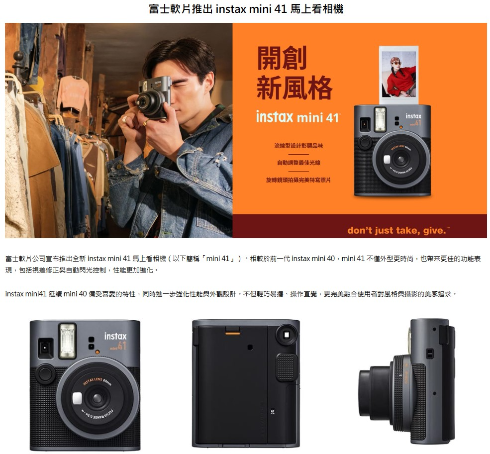 FUJIFILM instax mini 41 拍立得相機(公司貨)