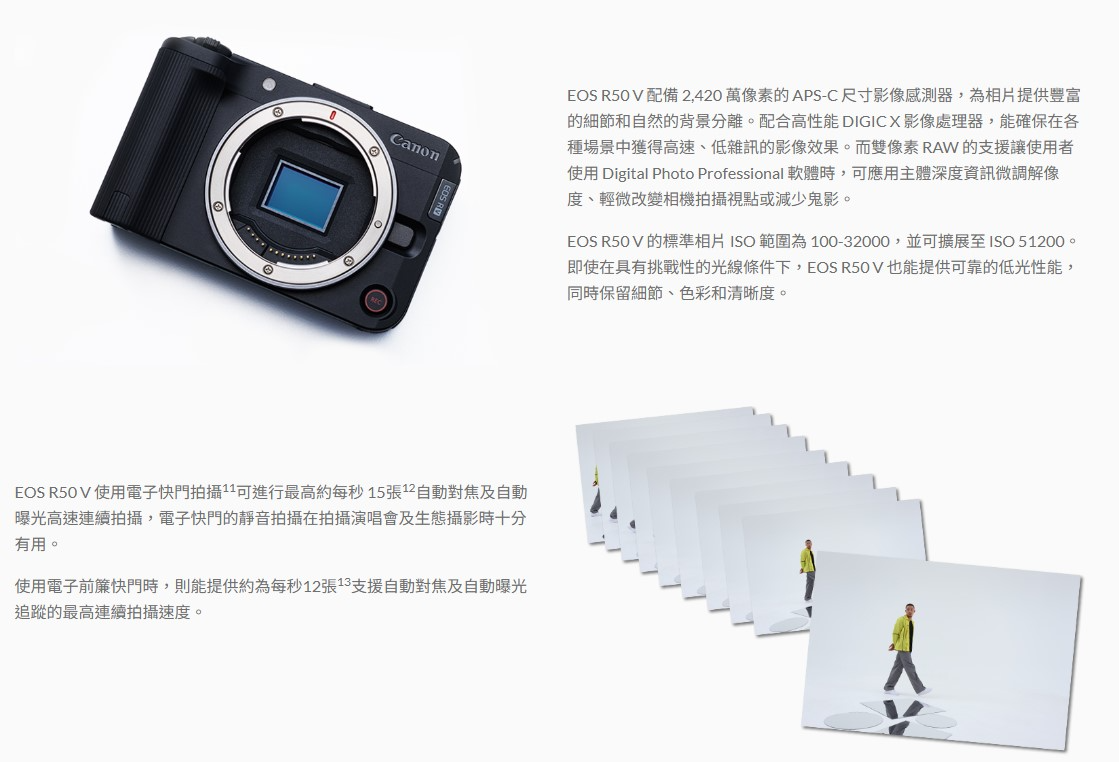 • 約 2,420 萬像素高速 APS-C CMOS 影像感測器