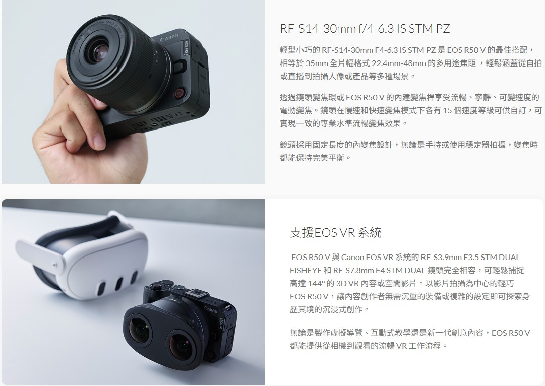 贈原廠手把 Canon EOS R50 V (RF-S14-30mm f/4-6.3 IS STM PZ)(公司貨)