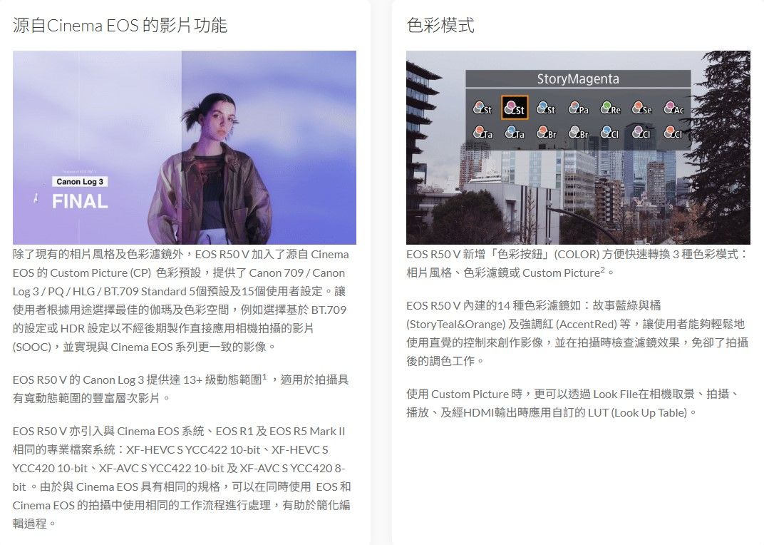 • Custom Picture 及 Canon Log 3
