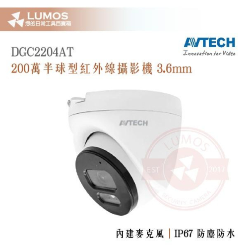 【台灣現貨|當天出貨】AVTECH 陞泰 DGC2204AT 200萬半球型含音紅外線攝影機