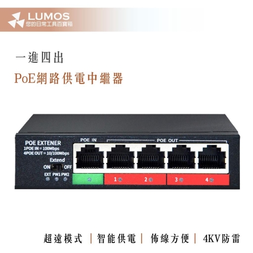 【台灣現貨/當天出貨】一進四出 PoE網路供電中繼器 中繼器 超遠模式 |智能供電| 佈線方便| 4KV防雷