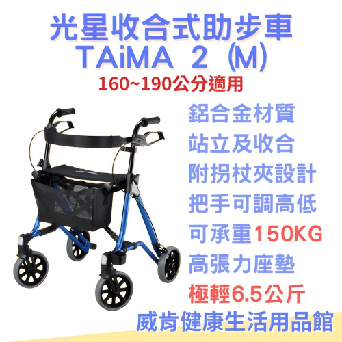 🔸TAiMA 2 簡約設計的外表下卻有著絕對同步歐盟安全標準的主體結構與獨特可站立收合的功能,並且僅僅 6.5kg 的全車重更可帶給你前所未有的輕盈步態感,讓復健行走不再感到遙不可及。
