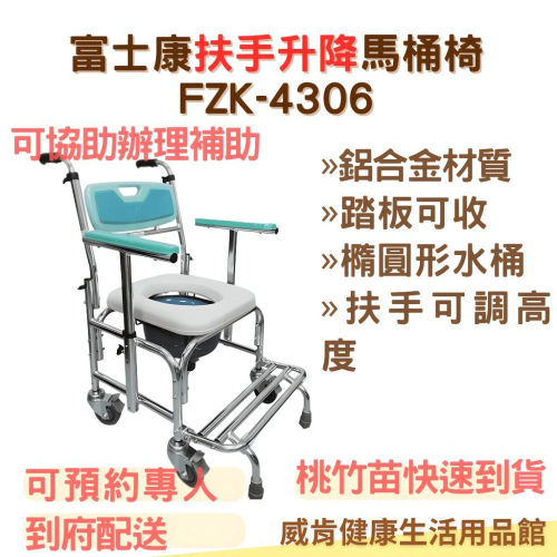 鋁合金馬桶椅 4306 扶手升降馬桶椅 防傾倒馬桶椅 洗澡椅 沐浴椅 長照輔具 移位馬桶椅