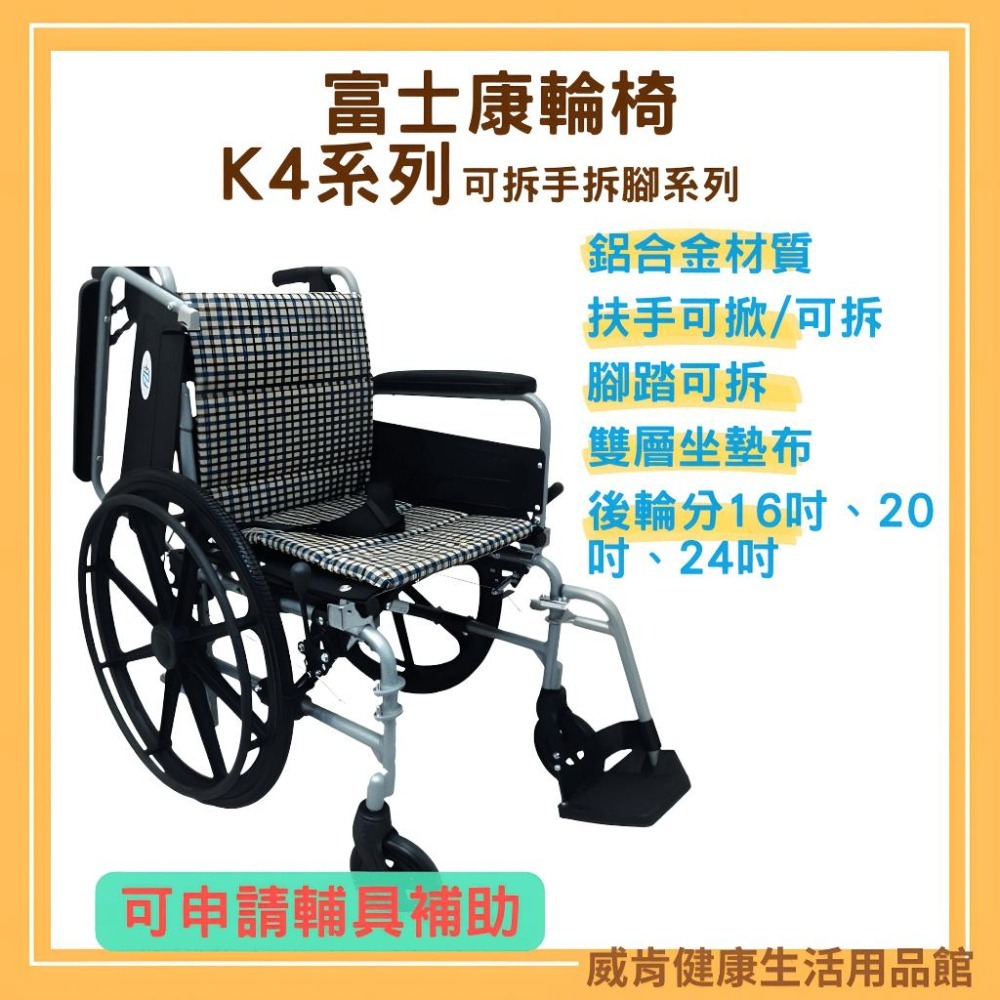 鋁合金輪椅 富士康 FZK-K4 折背 拆手拆腳 3款後輪 輪椅 16吋後輪 24吋後輪 脊損輪椅 輪椅B+A款 補助