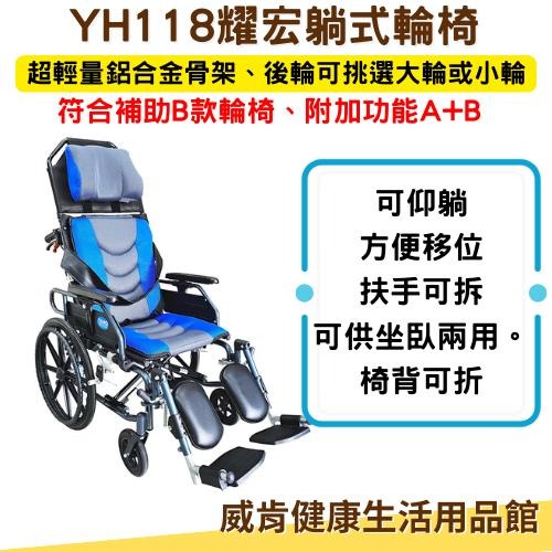 ◎ 躺臥式輪椅,超輕量鋁合金骨架。