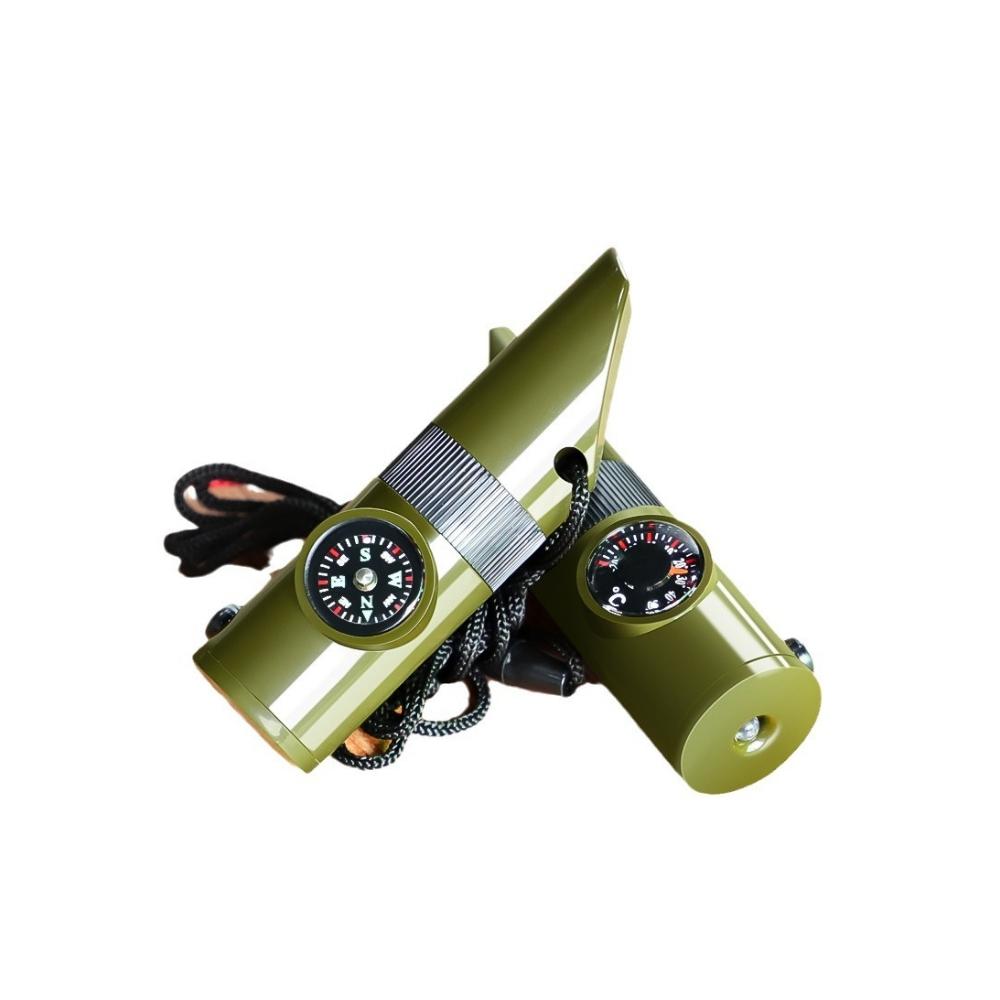 口哨、放大鏡、溫度計、反光鏡、手電筒、收納盒、指南針