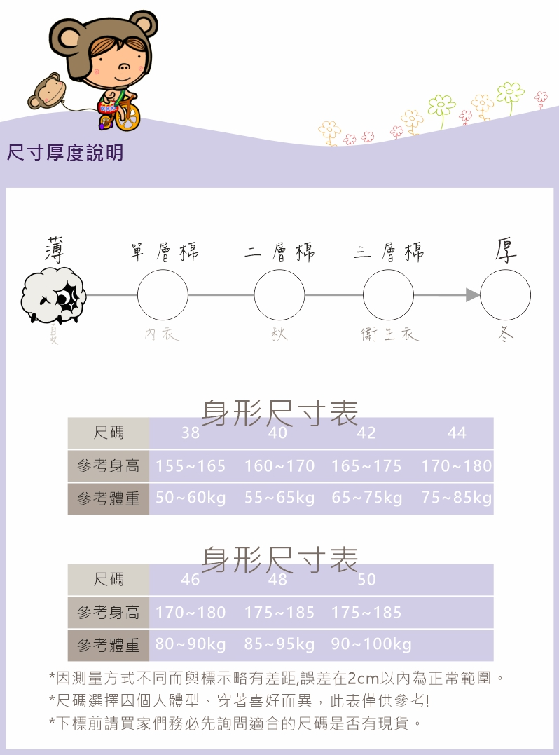 尺寸厚度 參考量表