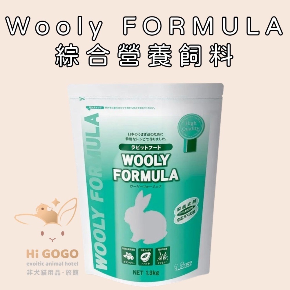 美國製造的WOOLY FORMULA是胺基酸含量高的綜合營養飼料,配方中以提摩西為主,還添加了蔓越莓,木瓜萃取物及大量的纖維,產品中粗大的纖維增加了寵兔的咀嚼次數,粘性低其顆粒一咬就碎,減低咀嚼負擔