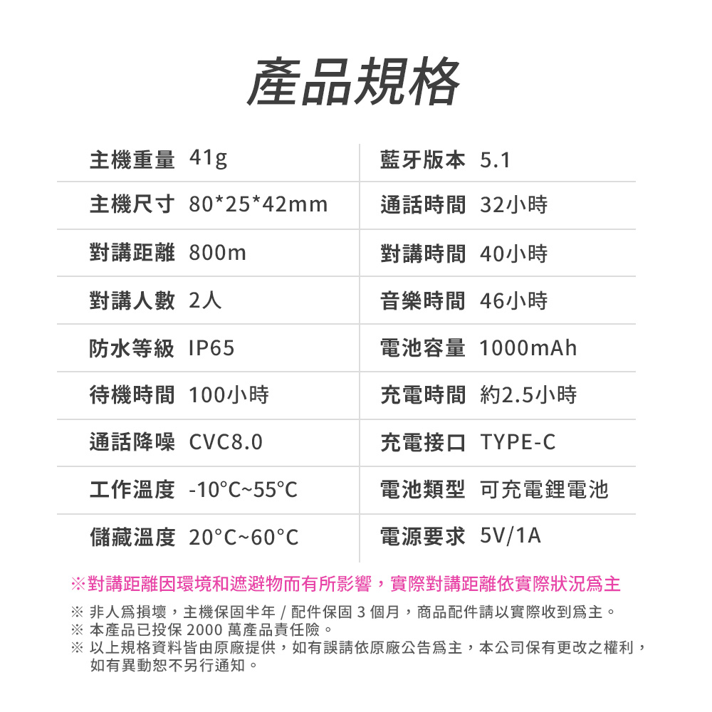 藍牙版本:5.1(一對一配對,可與其他同版藍牙本主機配對)