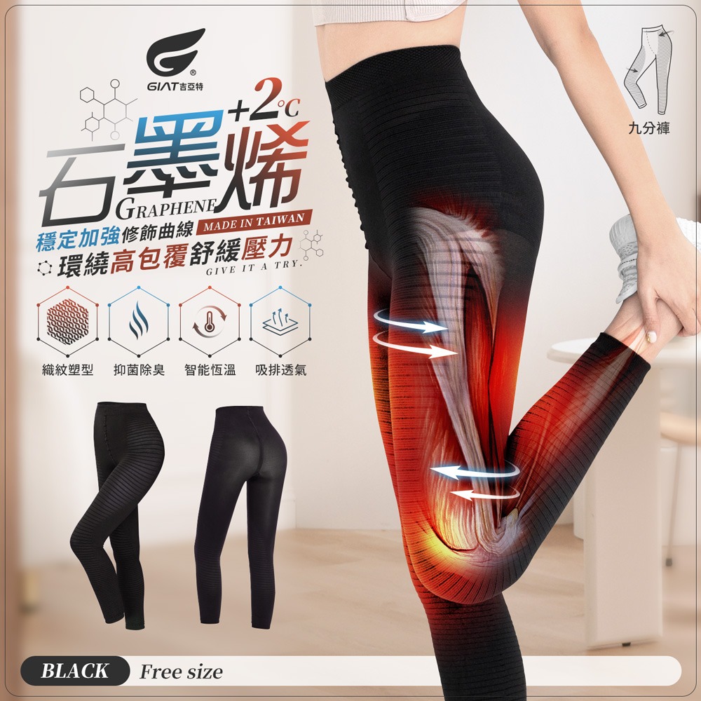 GIAT吉亞特|石墨烯遠紅外線機能彈力九分褲