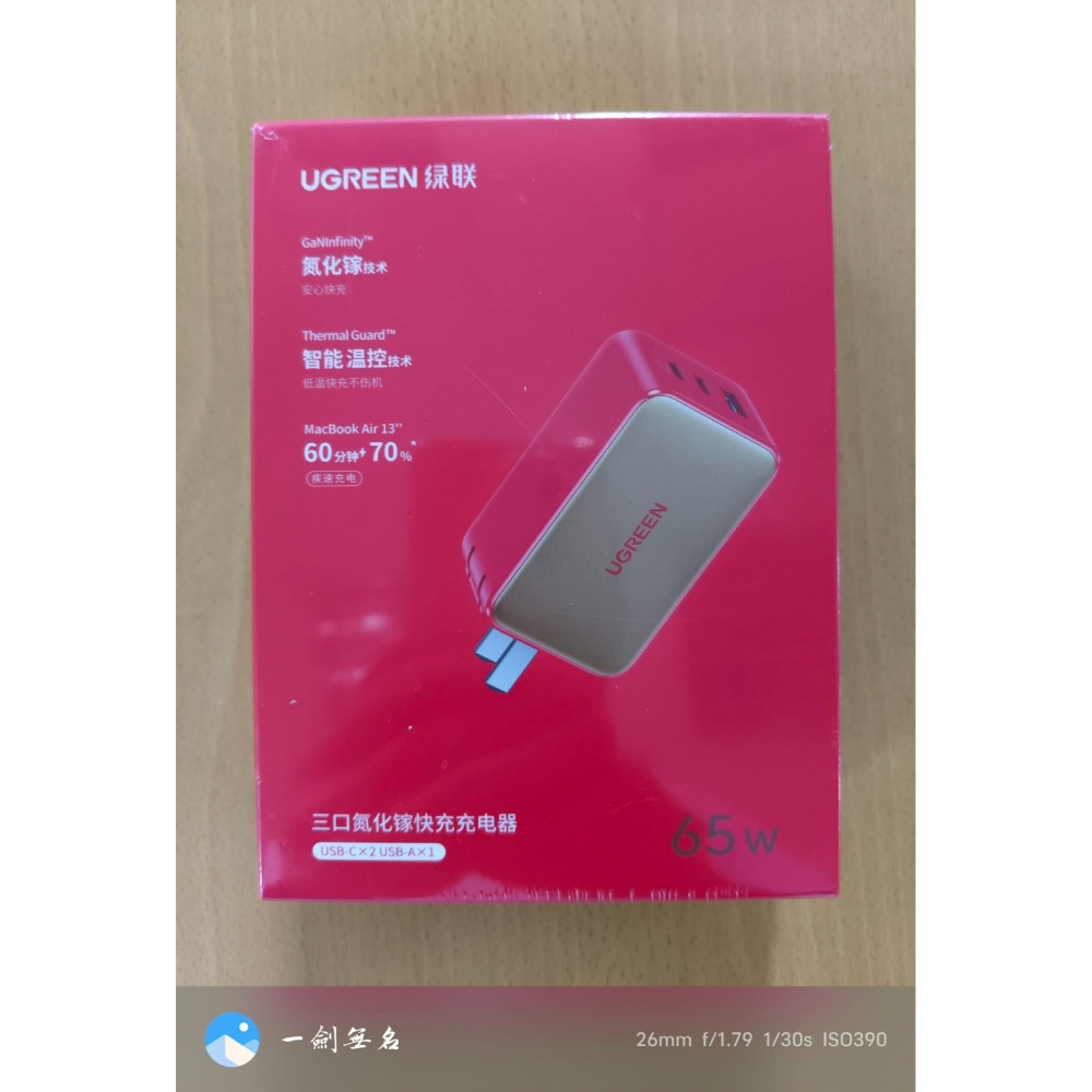 綠聯65W氮化鎵充電器Type-C快充頭.紅色