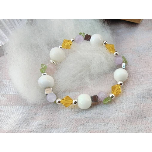 使用原料:龍宮舍利、橄欖石、水晶、糖果瑪瑙、純銀配件。