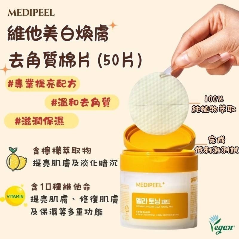 【韓國MEDI-PEEL 美蒂菲 潔淨水光肌去角質護膚棉片 50入/罐】●黃蓋
