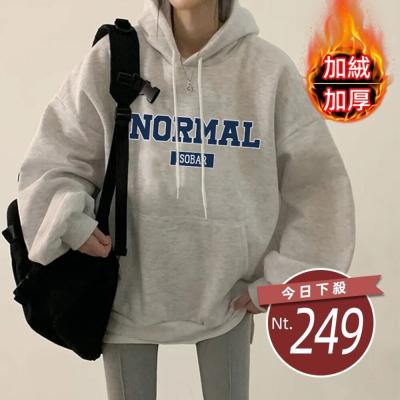 【台灣發貨】韓版內刷毛休閒字母連帽上衣 長袖上衣 長袖t恤 衣服 女裝 上衣【W687】