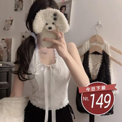 【台灣發貨】韓版蝴蝶結V領短版背心 帶胸墊免穿內衣 小可愛 背心 衣服 女裝 上衣【V434】