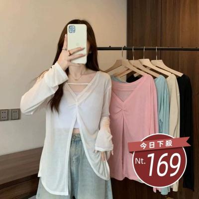 【台灣發貨】韓版薄款微透寬鬆防曬罩衫 外套 防曬外套 女裝 上衣 衣服【J393】