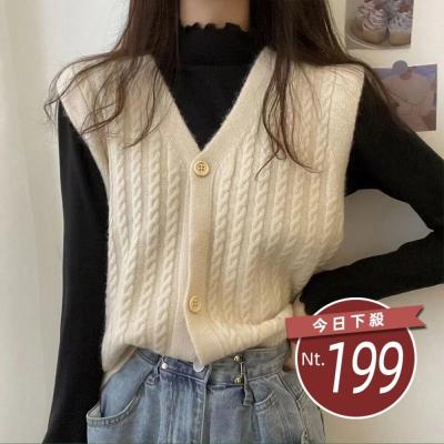 【台灣發貨】韓版V領復古麻花針織背心 小可愛 背心 衣服 女裝 外套 上衣【J360】