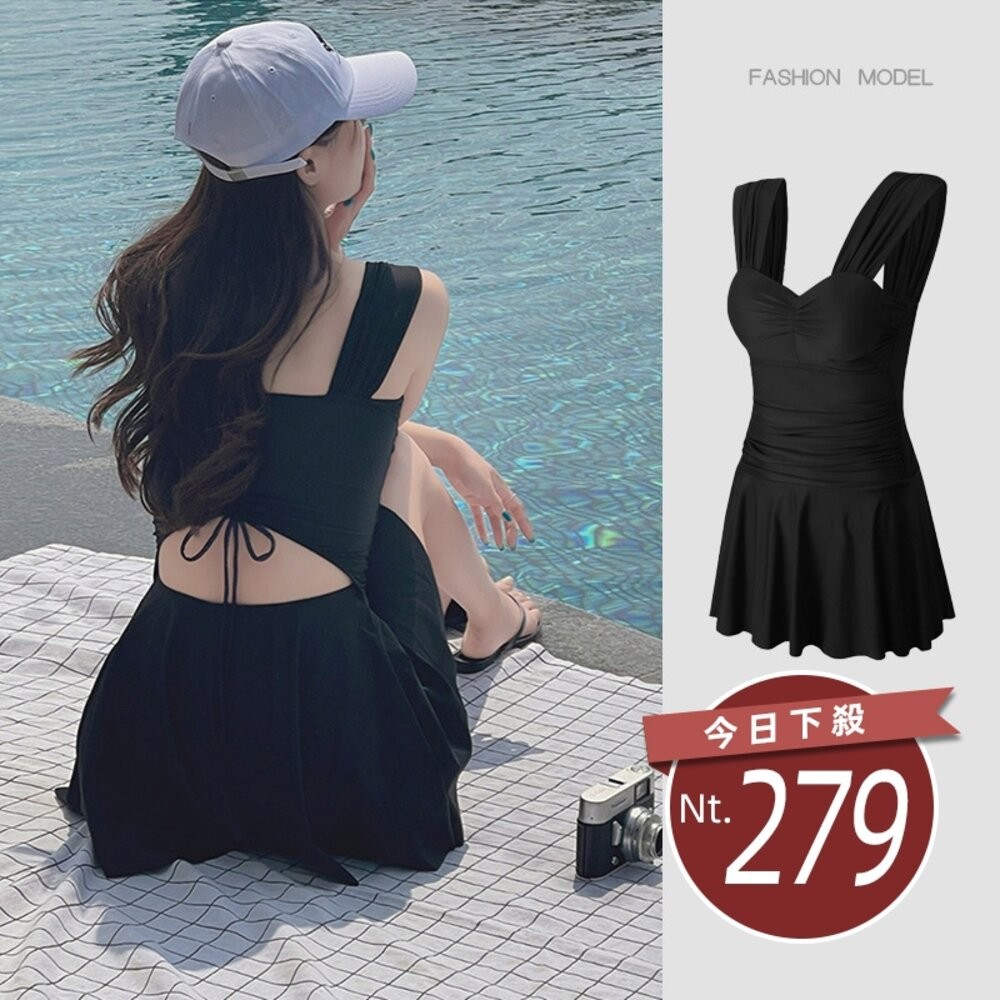 【台灣發貨】韓版露背百褶裙保守泳衣【S133】