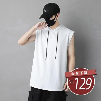【台灣發貨】韓版無袖連帽T恤 小可愛 背心 衣服 男裝 上衣【V269】
