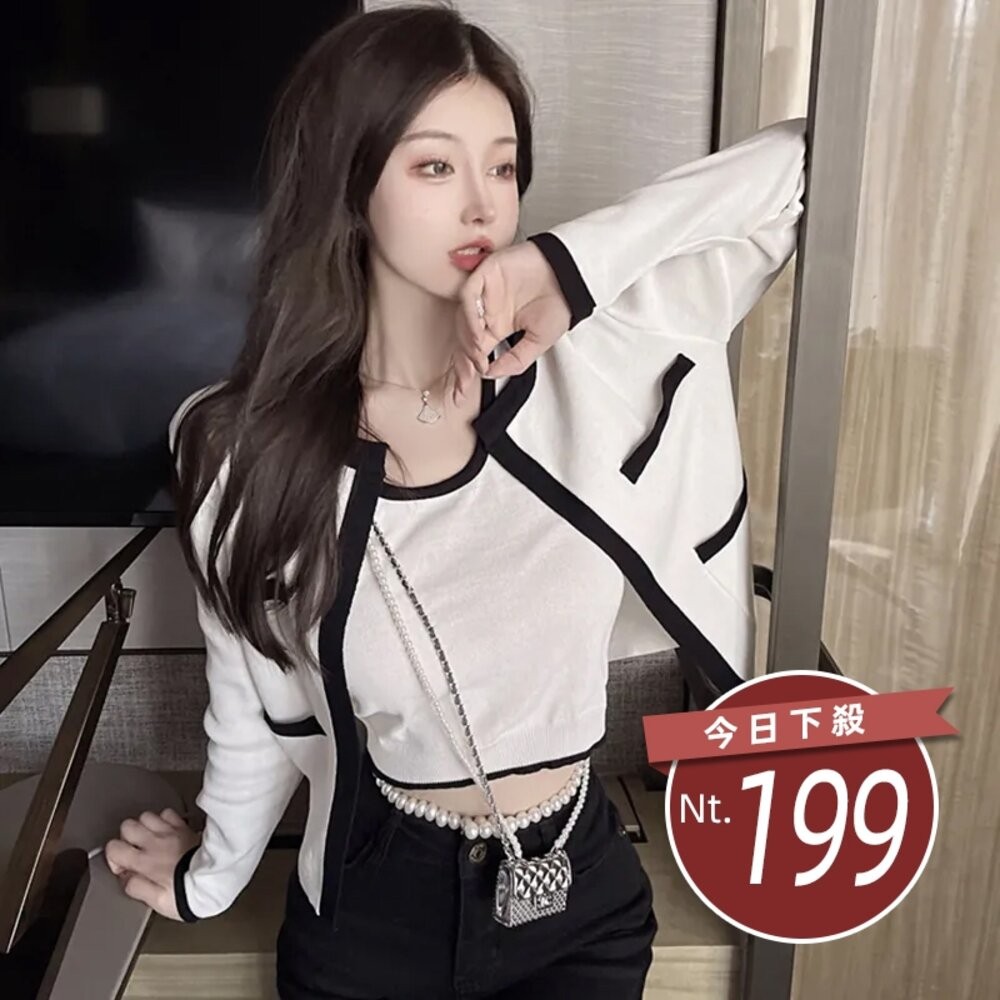 【台灣發貨】韓版撞色針織外套+針織背心 長袖上衣 長袖t恤 衣服 女裝 上衣【V385】【J344】