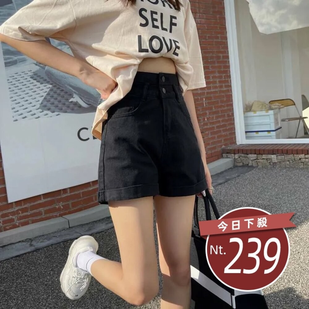 【台灣發貨】韓版顯瘦短版上衣搭配高腰捲邊牛仔短褲 短褲 褲子 女裝【P199】