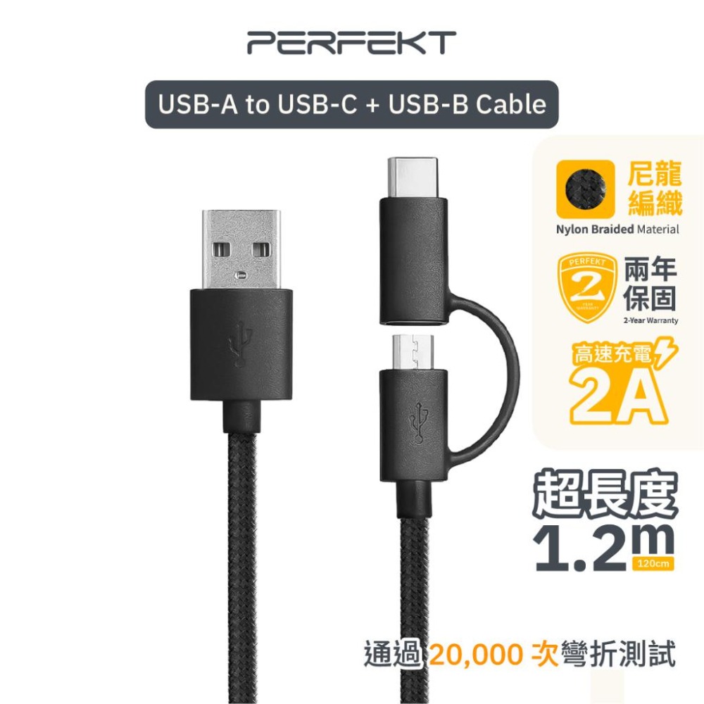PERFEKT USB A to Type C 1.2M 鋁合金編織 快速充電 傳輸線