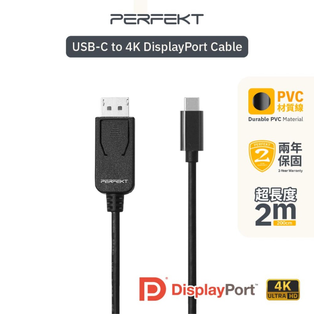 PERFEKT USB-C 轉DP 影音訊號轉接線, 2M 手機 平板 iPhone iPad Samsung