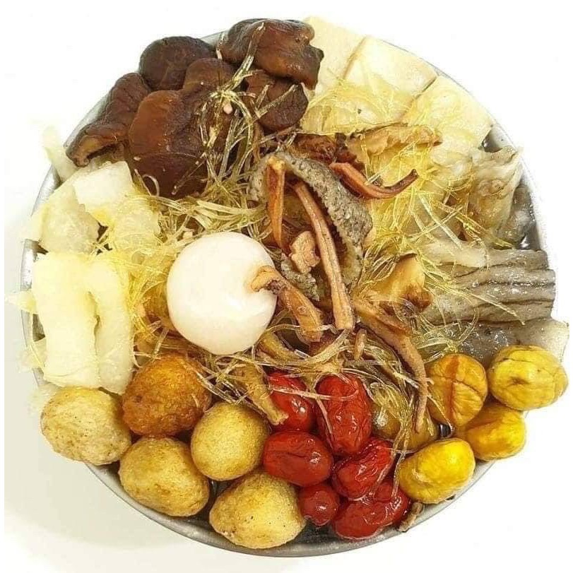 ✅內容物:魚翅、干貝、香菇、排骨酥、豬腳、芋頭、鳥蛋、栗子、豬肚、腳筋、魚皮、紅棗、筍片、多種調味精心製作合成。